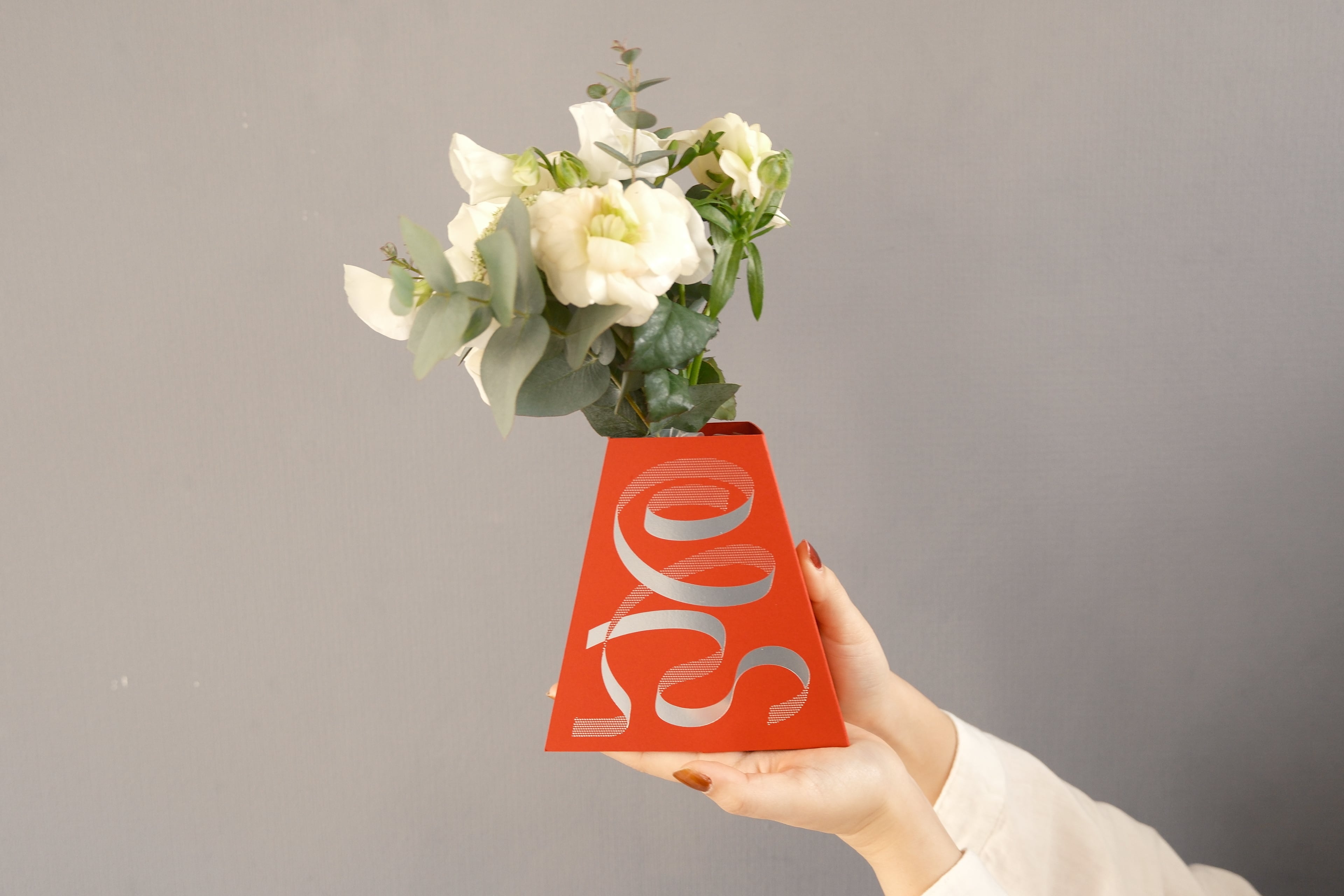 白薫 (紙器:レッド)|フラワーブーケ & 花瓶